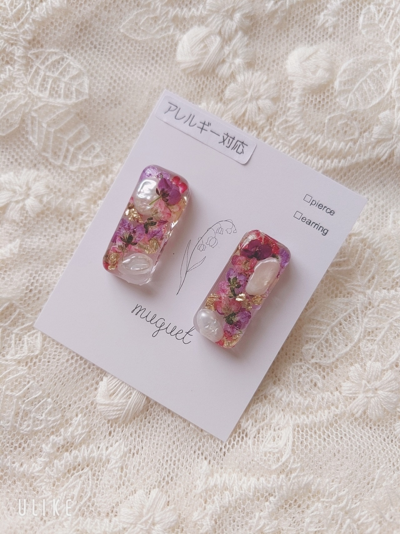 ぎゅっと詰め込んだお花の中にパールが増えてより華やかになりました♡