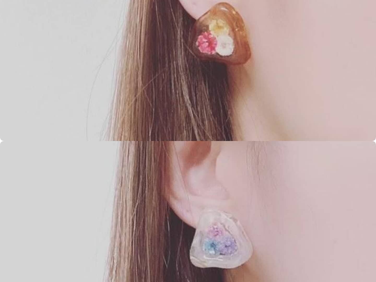 イヤリング▷バネ式ですが長時間付けても痛くなりにくいものを使用しています。